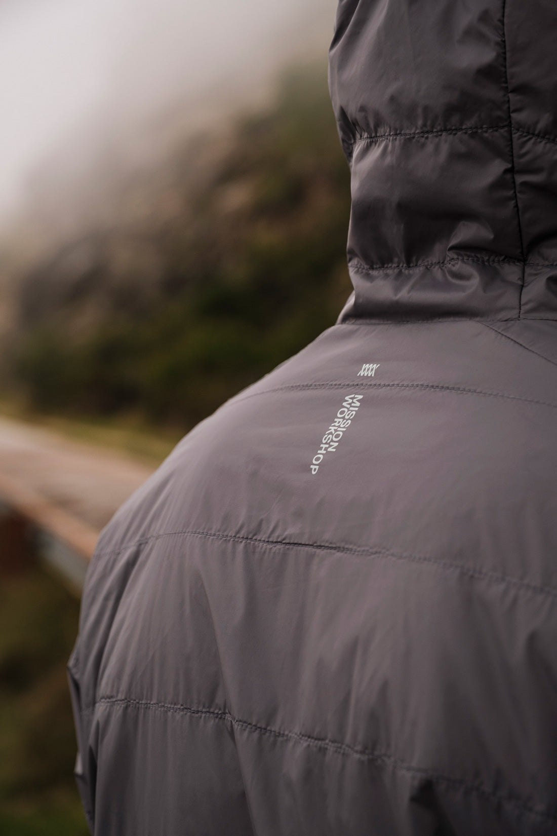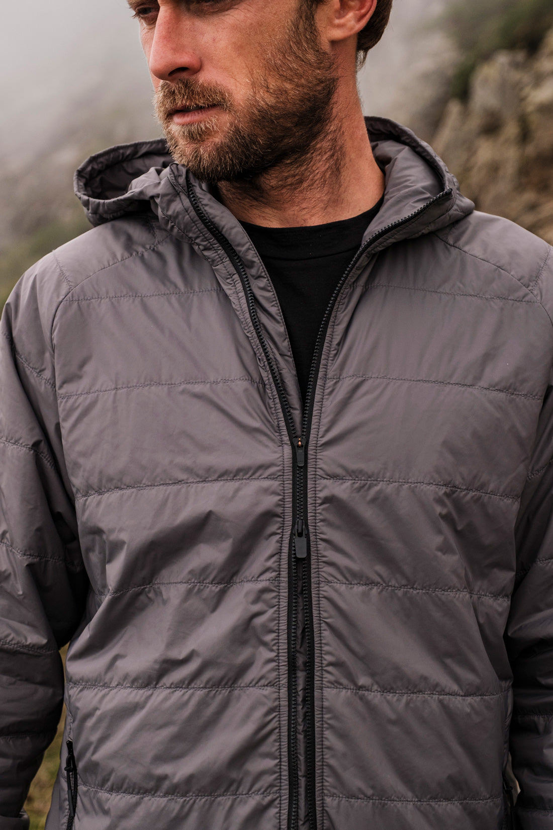 Constructed from an ultralight and durable 100% nylon textile produced by Olmetex in Como, Italy. The fabric is finished with a PFAS free C0 DWR coating that sheds light rain and allows for quick drying in changing conditions. Insulated with 40g PrimaLoft® Gold, the Onyx maintains its loft and warmth even when wet.