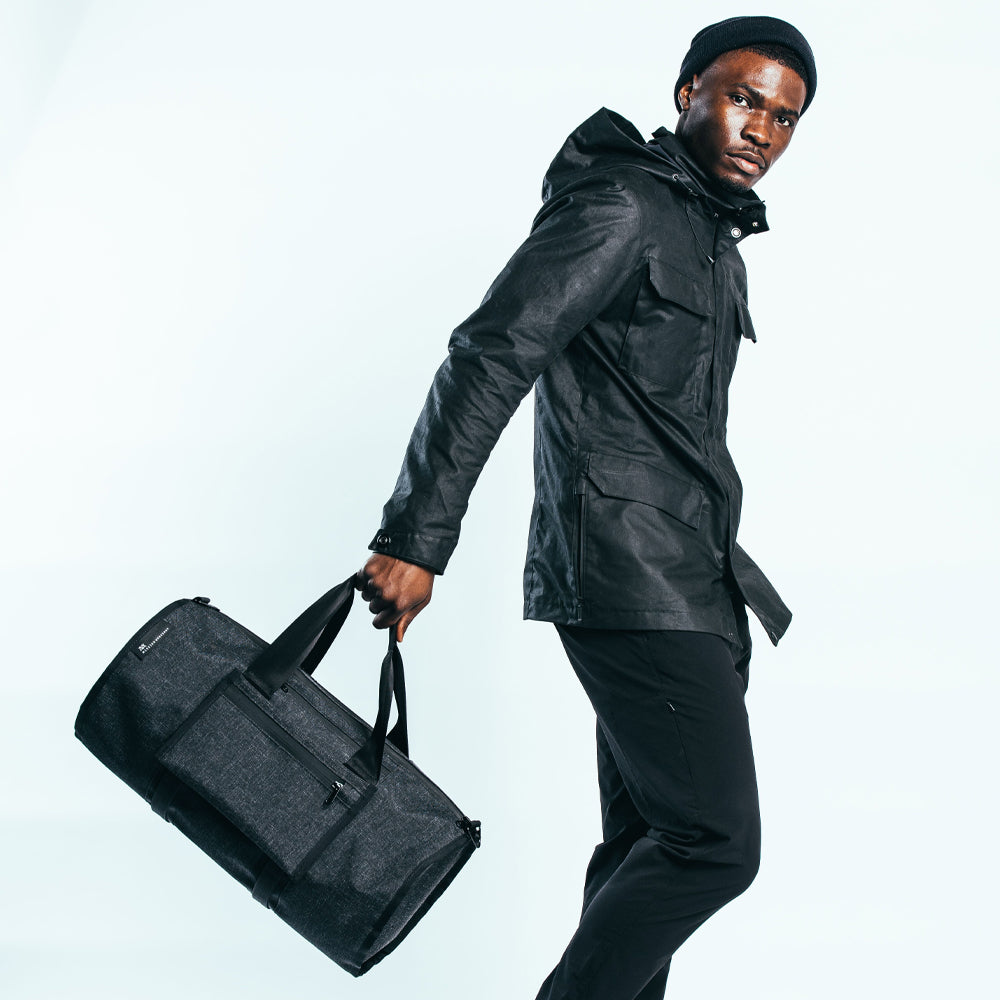 Eine Tasche im Stil eines Manifests, ideal für alle Ihre Kabel, Stifte, einen Reisepass und ein Moleskin.