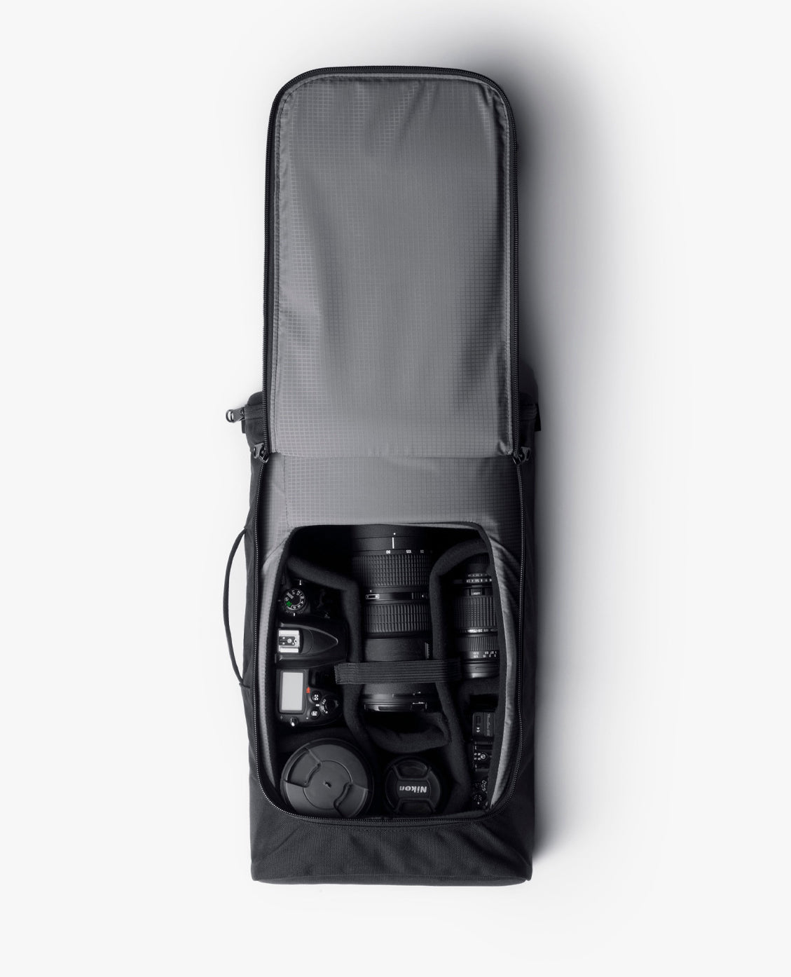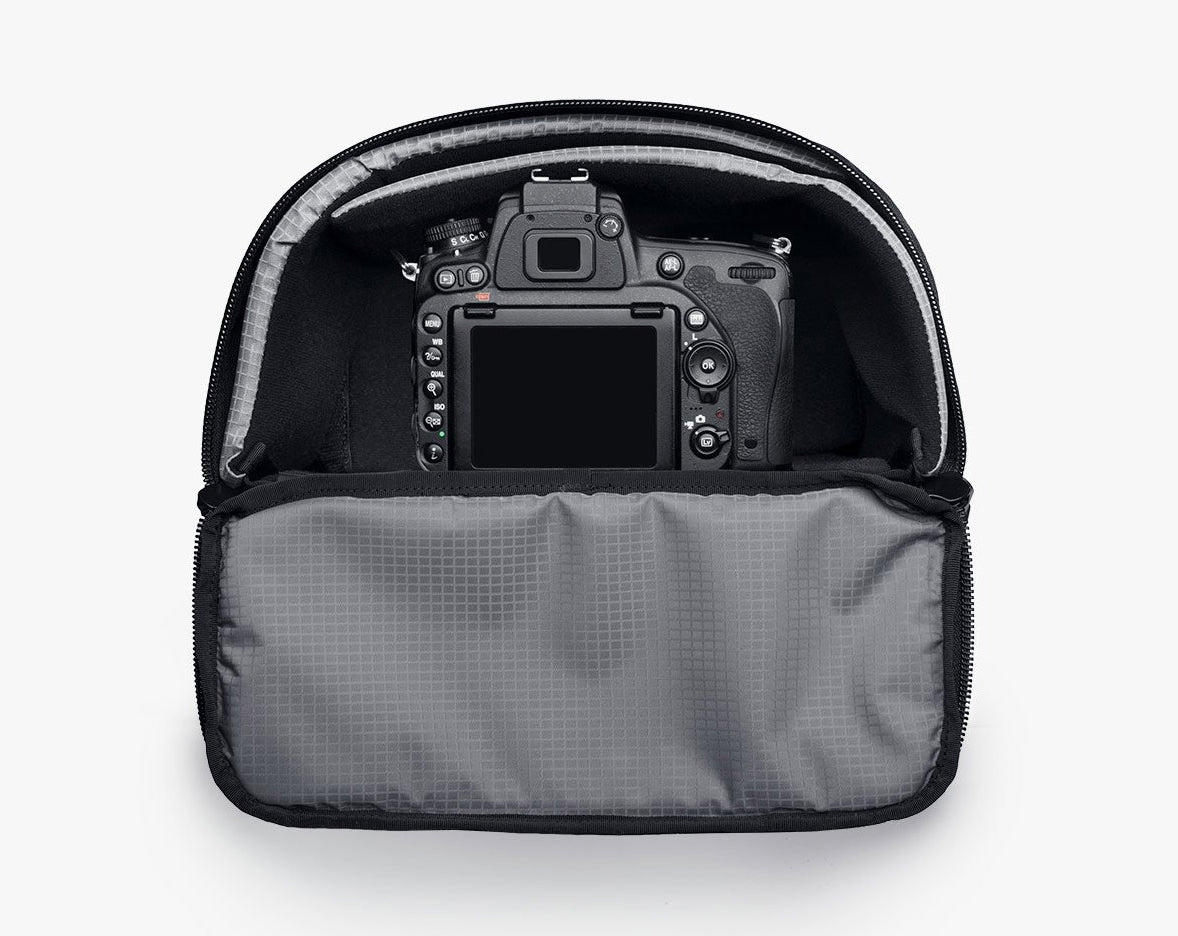 Der Zugriff auf die Ausrüstung in der Capsule kann über die Oberseite oder die Vorderseite erfolgen. Der obere Teil ist speziell für die Aufnahme einer DSLR oder eines spiegellosen Gehäuses mit einem Objektiv fast jeder Größe konzipiert, auf das direkt zugegriffen werden kann, ohne die Kapsel aus der Tasche nehmen zu müssen.