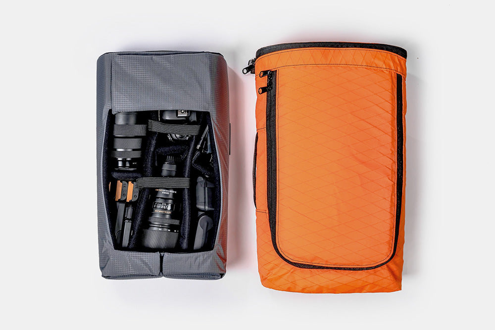 Der Capsule-Kameraeinsatz schützt Ihre Kameraausrüstung und anderes empfindliches Equipment mit einer vollständig gepolsterten Tasche und internen Trennwänden, die einfach konfiguriert werden können. Er ist so konzipiert, dass er perfekt in unsere Rucksäcke Rhake, Sanction, Fitzroy, Vandal und Arkiv passt, um einen vollständig anpassbaren, wetterfesten Kamerarucksack zu schaffen.