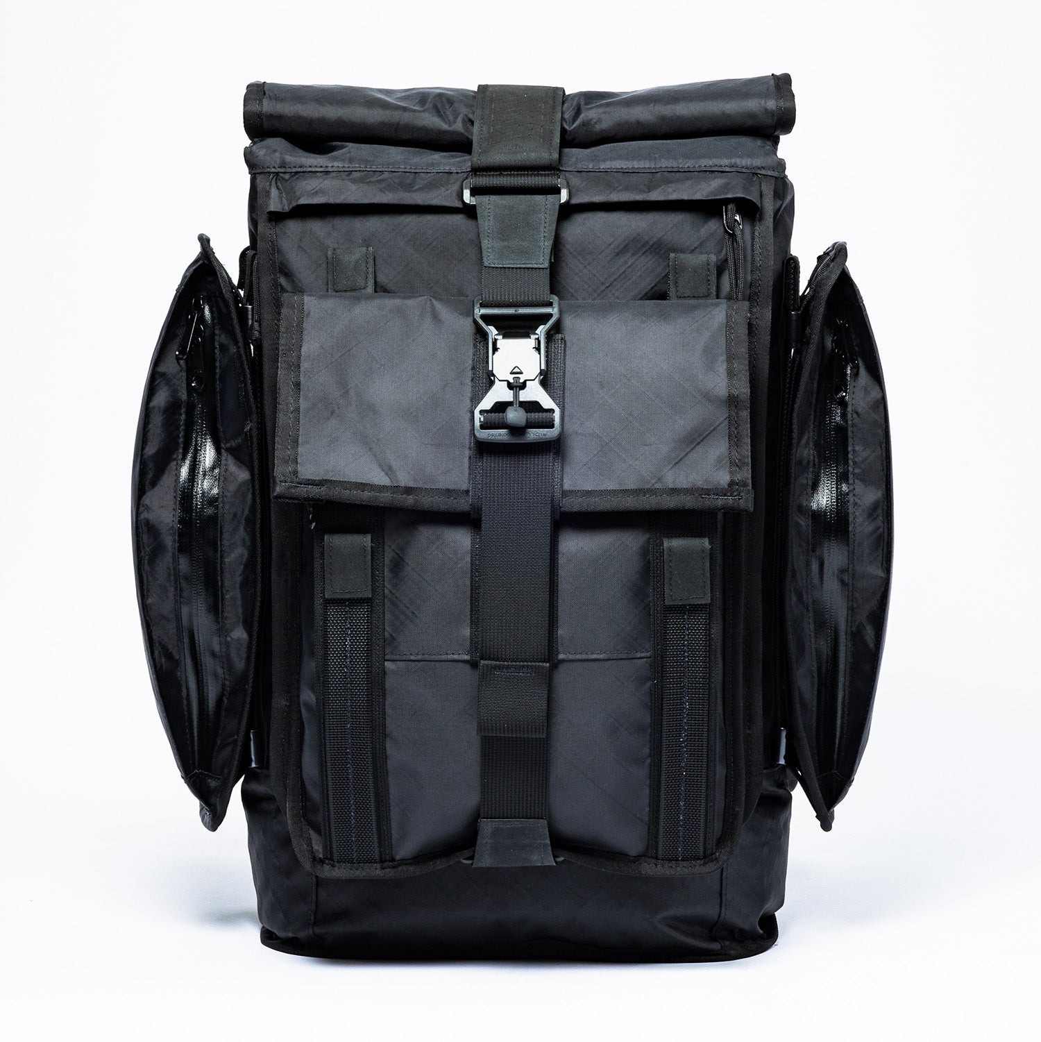 Verbindet alle Funktionen der Basistasche mit einem wasserdichten externen Folio und zwei wasserdichten Side-Roll-Taschen. Das Folio-Zubehör umfasst zwei wetterfeste Reißverschlusstaschen und Stiftfächer. Die wetterfesten Side-Roll-Taschen sind mit leicht zugänglichen Fidlock-Magnetverschlüssen mit V-Schnallen ausgestattet.