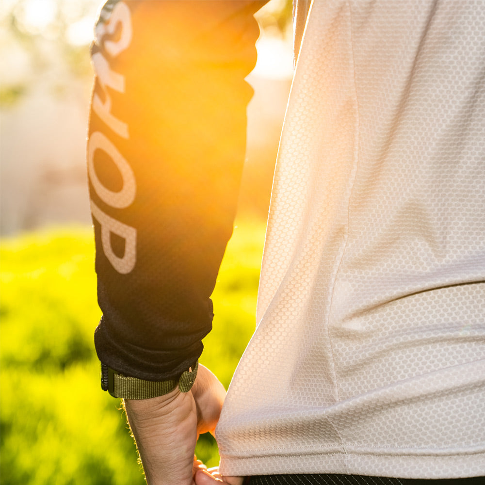 Die verbesserte Feuchtigkeitsableitung wird durch zwei verschiedene Garne erreicht, die ein Gefälle erzeugen, das die Feuchtigkeit vom Körper wegleitet. Eignet sich perfekt als Basisschicht, als Trikotalternative oder einfach als leistungsstarkes Langarm-T-Shirt.