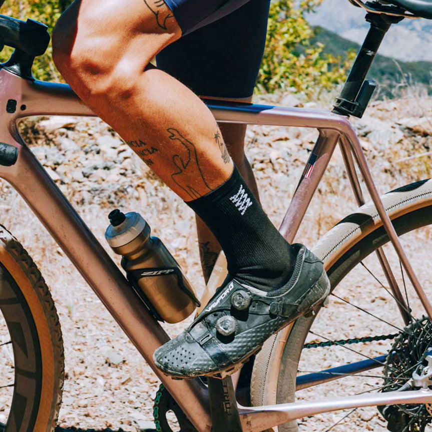 Die obere Rippstrickkonstruktion stützt die Wade perfekt und die Elastizität umhüllt die Füße, wodurch die Socken ideal für die anstrengendsten Aktivitäten sind. Die Socken sind zwar für Aktivitäten mit hoher Belastung konzipiert, können aber dank des dezenten Brandings auch im Alltag verwendet werden.