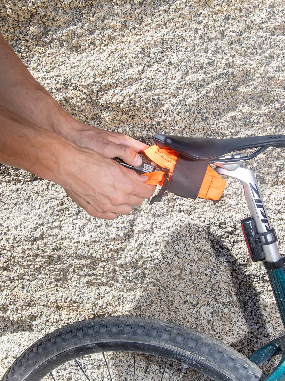 Die Mission Saddle Bag lässt sich an jedem Rennrad-, MTB- oder Gravelbike-Sitz befestigen und ist mit allen Sattelstützen kompatibel. Die aus wasserdichtem Dimension Polyant VX-Gewebe und Hypalon gefertigte Satteltasche ist äußerst witterungsbeständig und schnell trocknend. Das kompakte Design ist mit einem YKK Aquaguard-Reißverschluss und vier elastischen Innentaschen ausgestattet, um Ihr Werkzeug stabil und organisiert zu halten.
