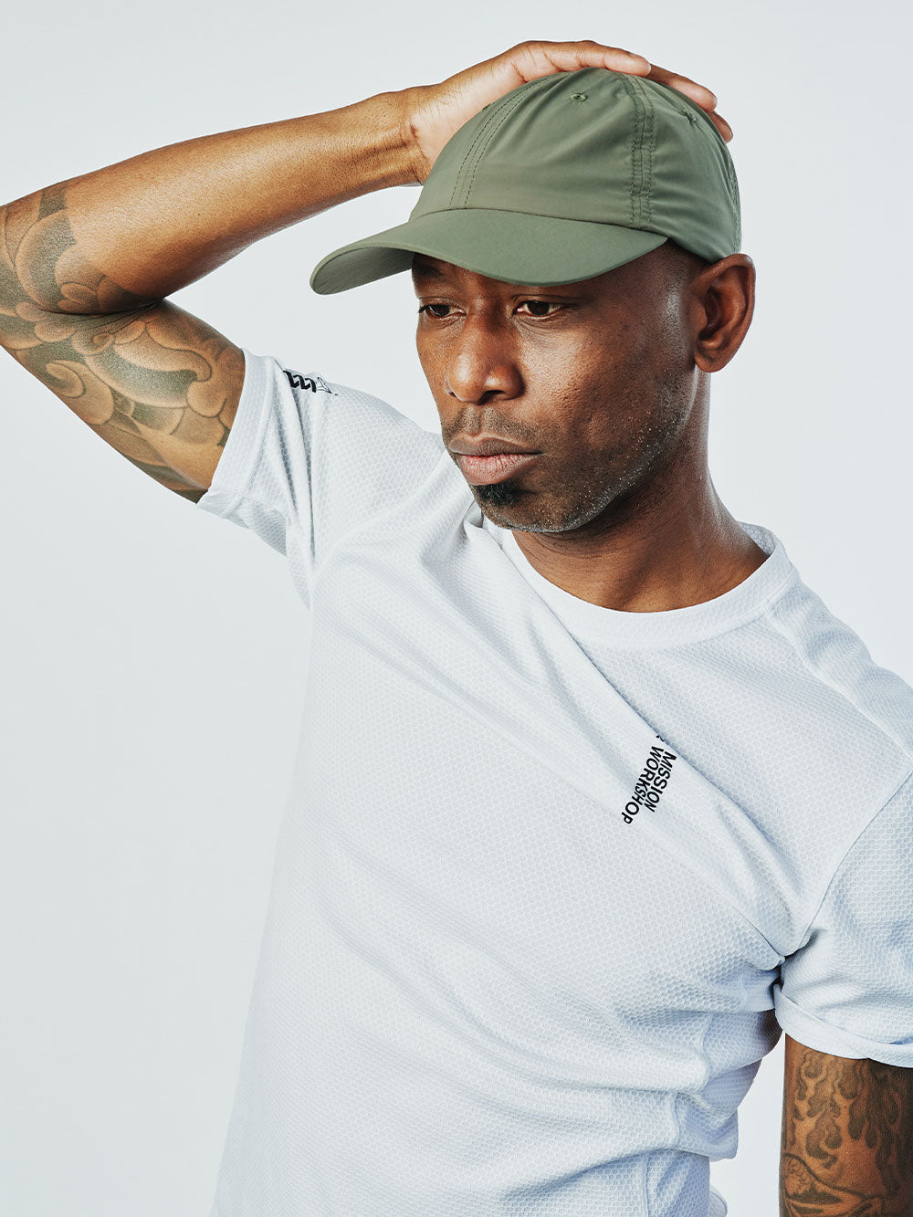 Die MW6 ist eine leistungsstarke Kappe, die Sie vor der Sonne schützt und Sie bei starker Anstrengung kühl hält. Sie besteht aus einem ultraleichten 4-Wege-Stretch-Textil, das speziell für Mission Workshop von Mectex in Como, Italien, hergestellt wird und außergewöhnlich atmungsaktiv und schnell trocknend ist.