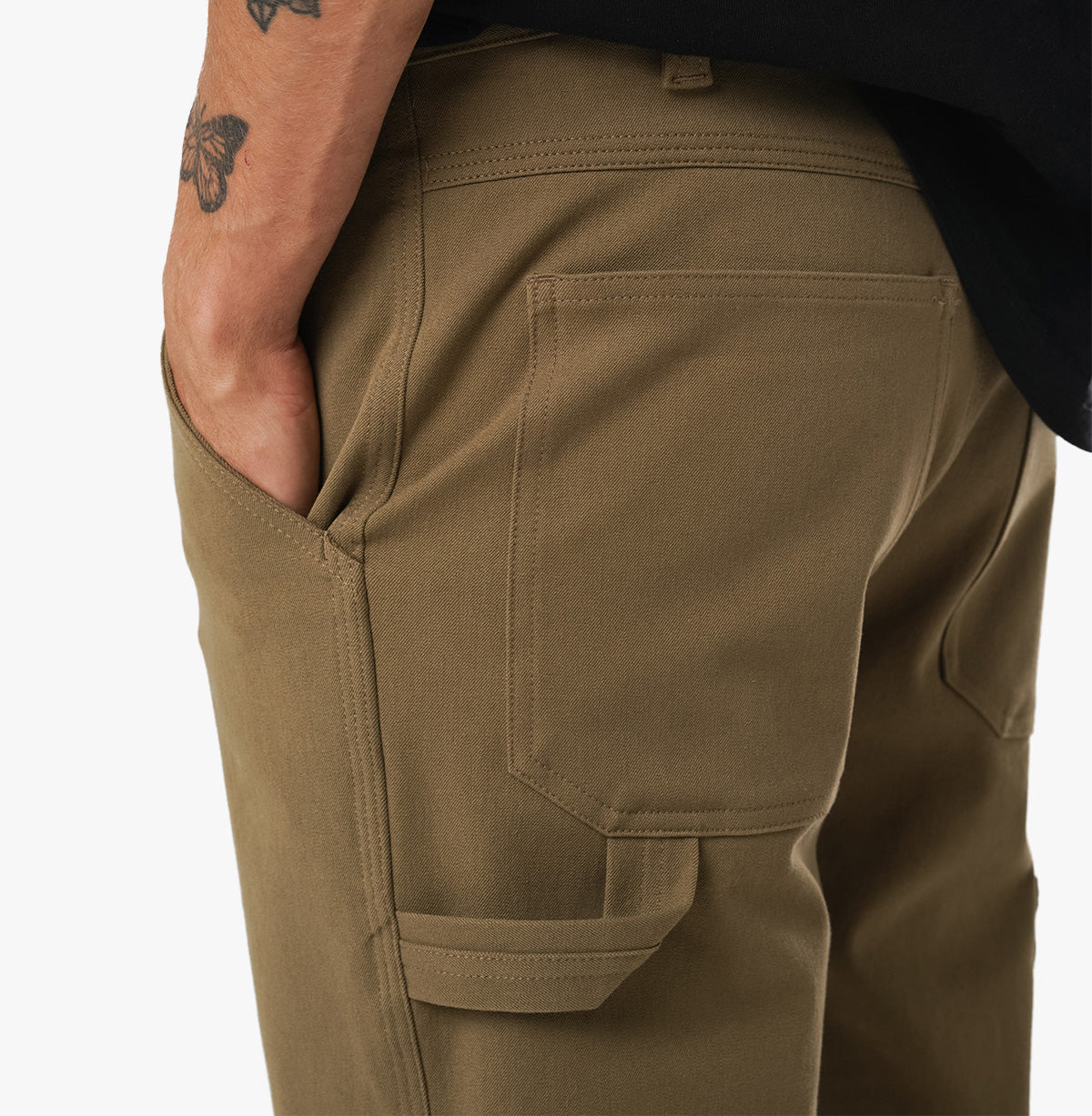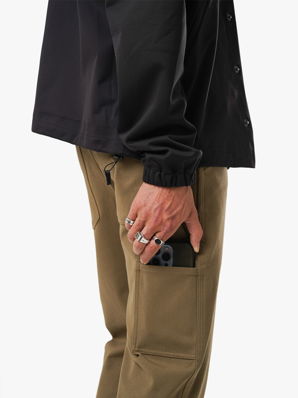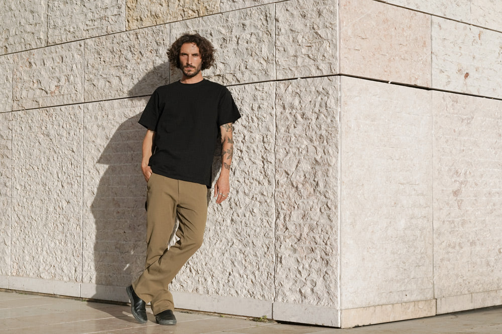 Die Paragon ist unsere Interpretation der klassischen Arbeitshose. Sie wird in New York aus dem gleichen 4-Wege-Stretch-Stoff wie die Mission Jean hergestellt und ist mit einer entspannten Passform und einem breiteren Bein für mehr Bewegungsfreiheit geschnitten. Dieser fortschrittliche Stoff wurde von Mectex M.I.S. in seiner Fabrik in Como, Italien, für Mission Workshop entwickelt und ist extrem dehnbar, ohne dabei an Haltbarkeit oder Struktur einzubüßen.