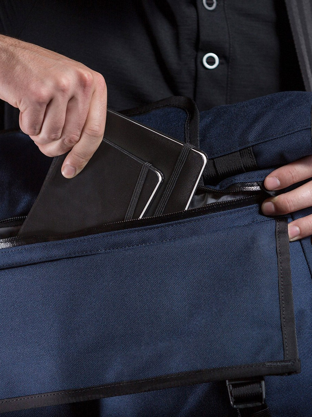 Die Rummy ist eine wetterfeste Kuriertasche mit 1.600 Kubikzentimetern Fassungsvermögen und einem Rolltop-Hauptfach, das entweder im "Rolltop"-Modus oder in der traditionellen "Klappe unten"-Konfiguration verwendet werden kann. Sie verfügt über schnell zugängliche Außentaschen, Innentaschen mit Reißverschluss, maßgeschneiderte Aluminiumgurte und einen abnehmbaren Kreuzbruststabilisator.