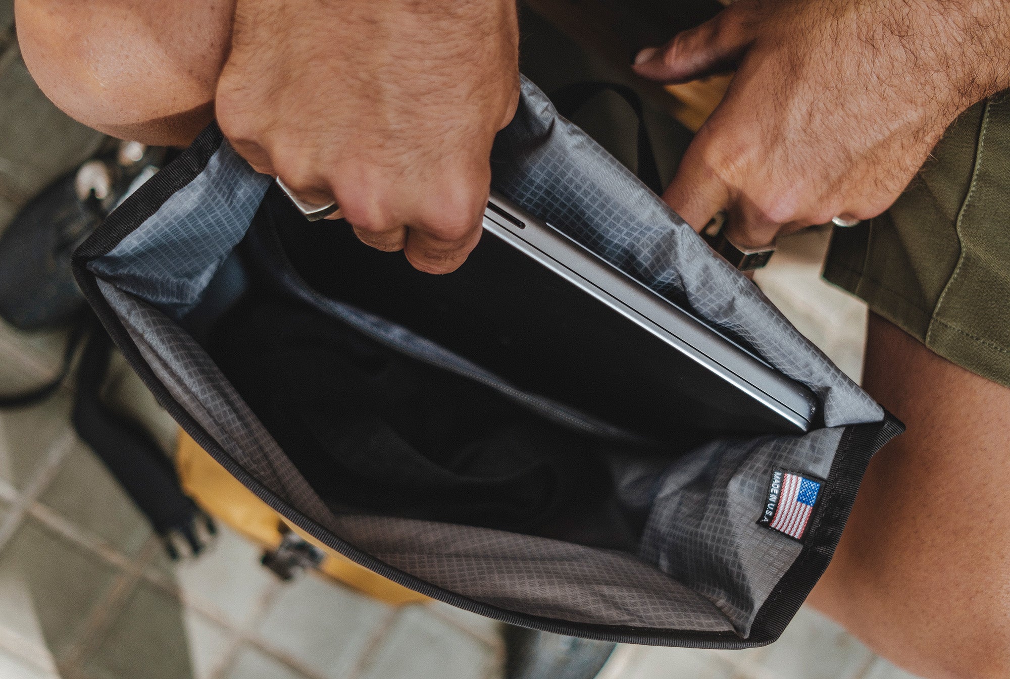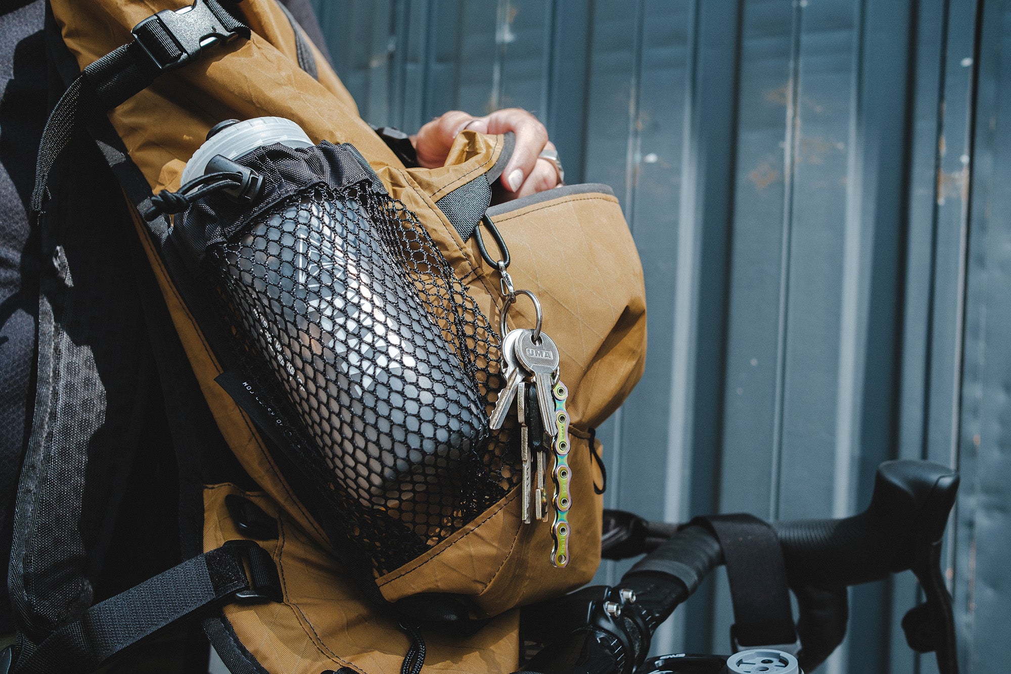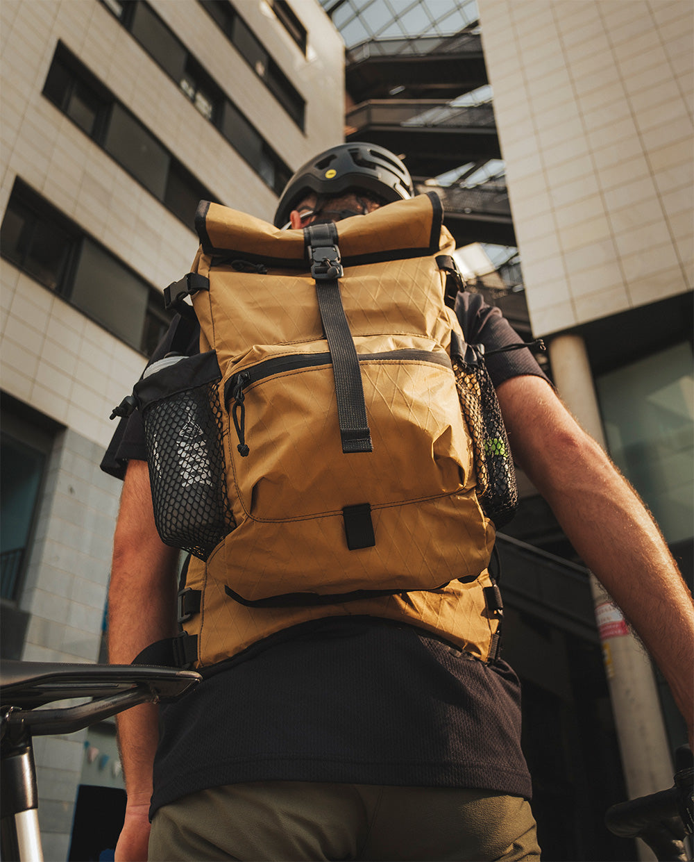 Der Hauptfrachtraum bietet viel Platz und ein gepolstertes, wasserdichtes Laptopfach mit Reißverschluss, in das MacBooks bis zu 16" passen. Die Klappe ist mit einem magnetischen Fidlock-Verschluss für schnellen und zuverlässigen Zugriff gesichert und verfügt über einen verstellbaren Hüftgurt, Brustgurte und eine integrierte Lichtschlaufe.