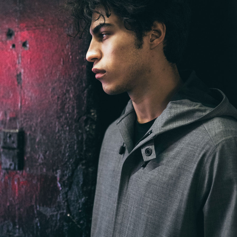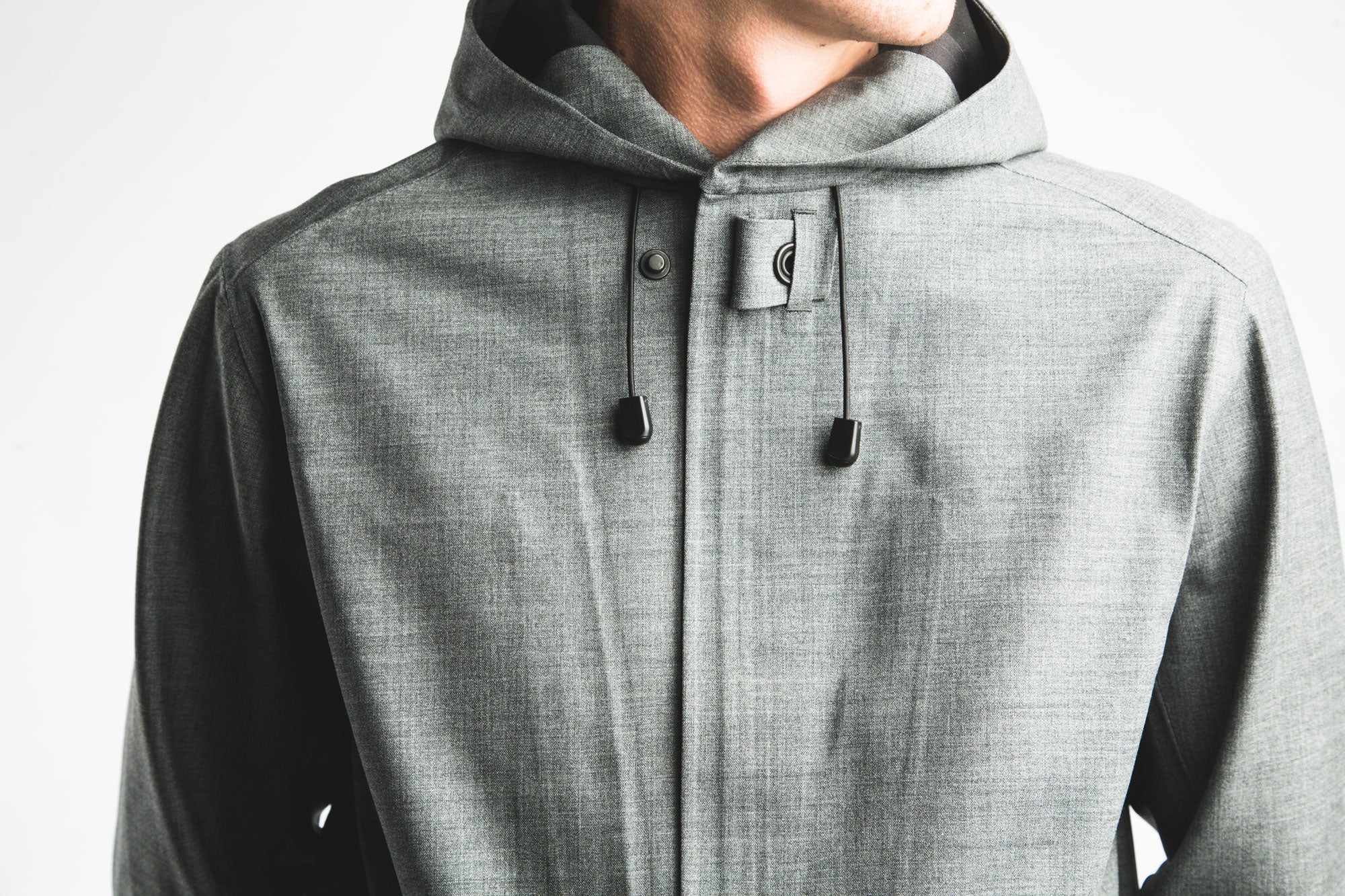 Der Zusatz von feiner Wolle auf der Außenseite sorgt für ein maßgeschneidertes Äußeres, während die wasserdichte Konstruktion und die Sturmkapuze zuverlässigen Schutz bieten, wenn das Wetter umschlägt. Ausgestattet mit zwei Handwärmertaschen mit YKK Aquaguard-Reißverschluss, zwei Innentaschen mit Reißverschluss und einer Innentasche für Fahrkarten.