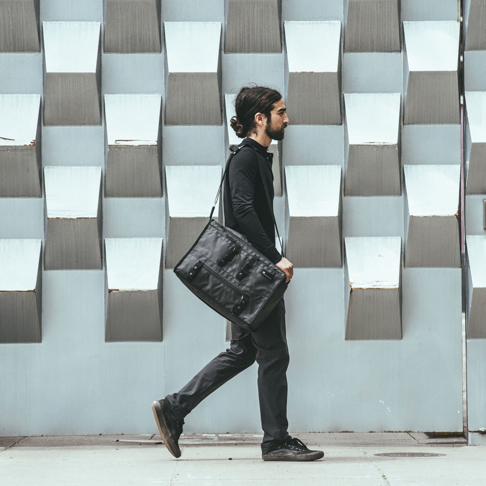 Die wetterfeste Seesacktasche Transit ist für jede Gelegenheit geeignet und für alle Bedingungen gerüstet. Sie bietet Platz für ein 16" MacBook Pro, verfügt über mehrere Taschen und ist mit wasserfesten, beschichteten YKK-Nylon-Reißverschlüssen, Druckknöpfen aus Metall und mil-spezifischen Materialien ausgestattet.