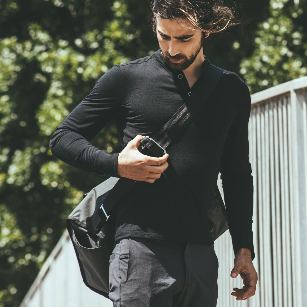 Zu den zahlreichen Tragemöglichkeiten gehören: verdeckte Griffe, ein abnehmbarer, schnell verstellbarer Schultergurt und ein optionaler, separat zu bestellender Rucksackgurt für schwere Lasten. Darüber hinaus lässt sich die Tasche sicher an einem Fahrradträger im Stil eines Fronttransporters befestigen.