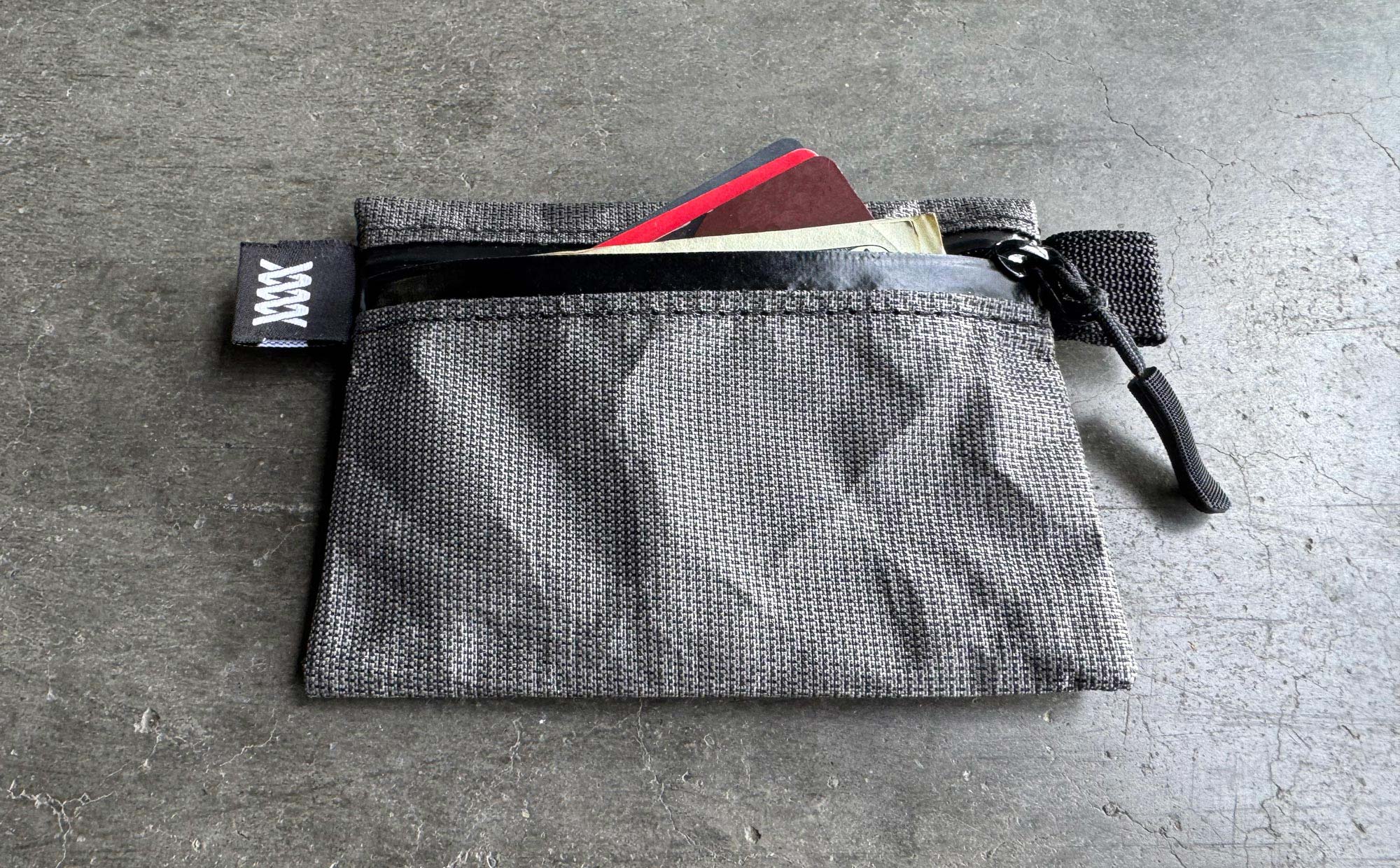 A YKK Aquaguard zipper helps keep contents protected from moisture, while the side pull loop doubles as a carabiner attachment point for clipping to packs or gear. The design stays slim in your pocket but tough enough for daily use or travel.